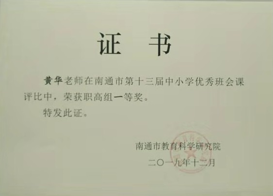 日前,由南通市教育科学研究院主办的南通市第十三届中小学优秀班会课比赛(职高组)评比结果揭晓,我校财贸系黄华老师喜获一等奖,学工处徐典正老师喜获二等奖。