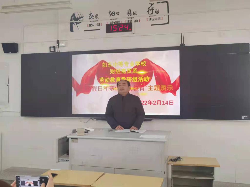 2月14日下午二、三课,财经财贸系组织开展第一次劳动课教研组活动,陈校长带领学工处、系部相关德育主任到财经商贸系观摩指导劳动教育教研组第一次活动。