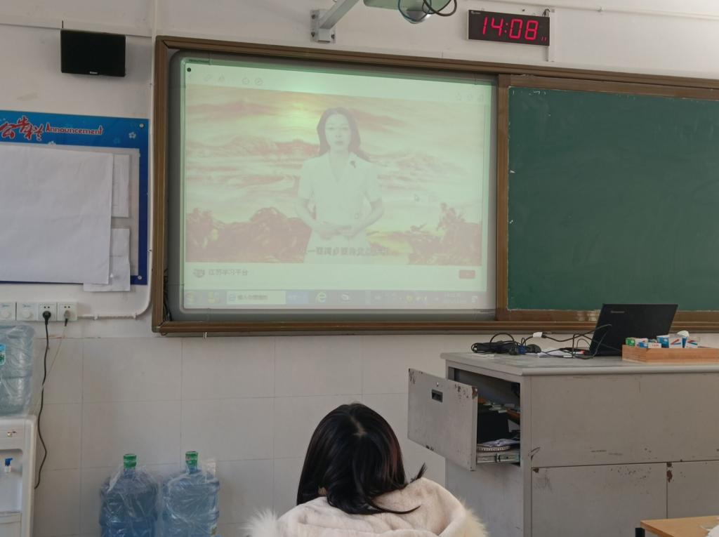 教师保存并认真观看每一个视频资源,并在德育课堂上安排学生集中观看,学生观看照片发张霞书记。