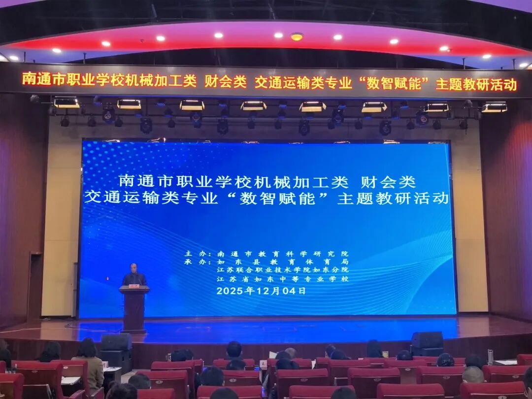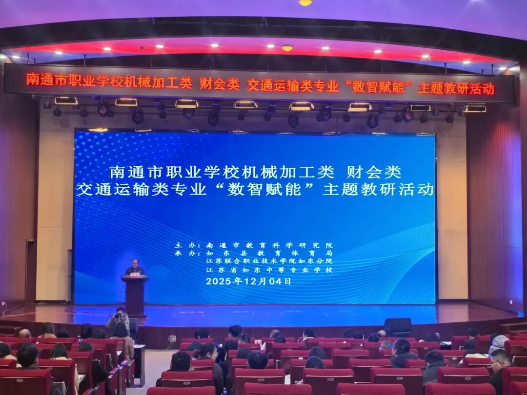 冬月暖阳聚匠心,数智赋能启新程。12月4日至5日,由南通市教育科学研究院主办,如东县教体局、如东中专承办的全市职业学校机械加工、财会、交通运输三大类专业“数智赋能”主题教研活动顺利举行。来自全市机械加工、财会、交通运输教科研中心组成员、各校骨干教师及张家港中专、浦口中专等80余位职教同仁,共赴这场智慧与实践交织的教研盛会。